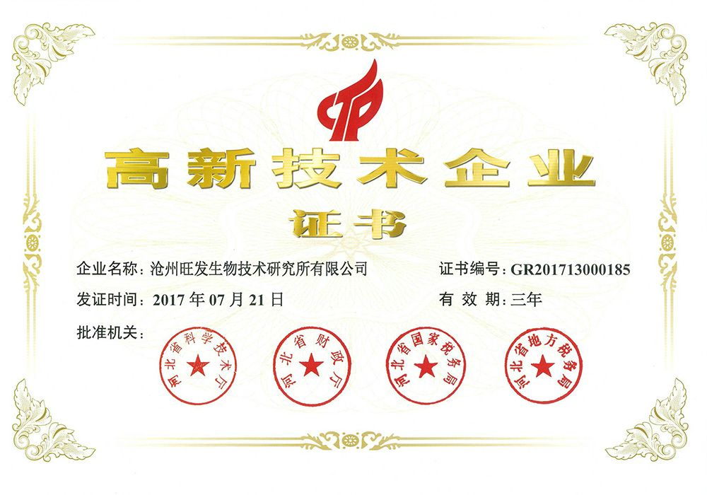 滄州旺發(fā)生物技術(shù)研究所有限公司創(chuàng)立于1993年,是集研發(fā)、生產(chǎn)、銷售于一體的微生態(tài)制劑生產(chǎn)“高新技術(shù)企業(yè)”、“國家知識(shí)產(chǎn)權(quán)優(yōu)勢(shì)企業(yè)”、“河北省農(nóng)業(yè)產(chǎn)業(yè)化重點(diǎn)龍頭企業(yè)”、“河北省創(chuàng)新型中小企業(yè)”、“河北省專精特新中小企業(yè)”,目前,公司注冊(cè)資金1360萬元,生產(chǎn)占地80畝,擁有液、固態(tài)結(jié)合全自動(dòng)發(fā)酵生產(chǎn)線及標(biāo)準(zhǔn)化全自動(dòng)液態(tài)發(fā)酵、噴霧干燥生產(chǎn)線。